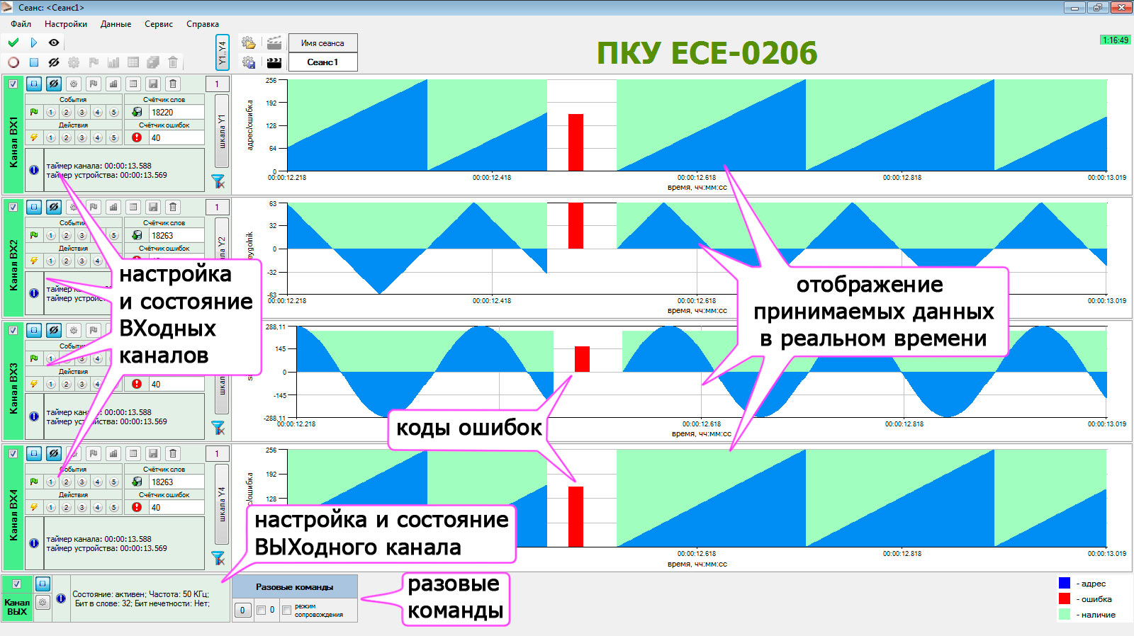 При работе с ECE-0260-1 в ПО "ПКУ ECE-0206" обеспечивается: