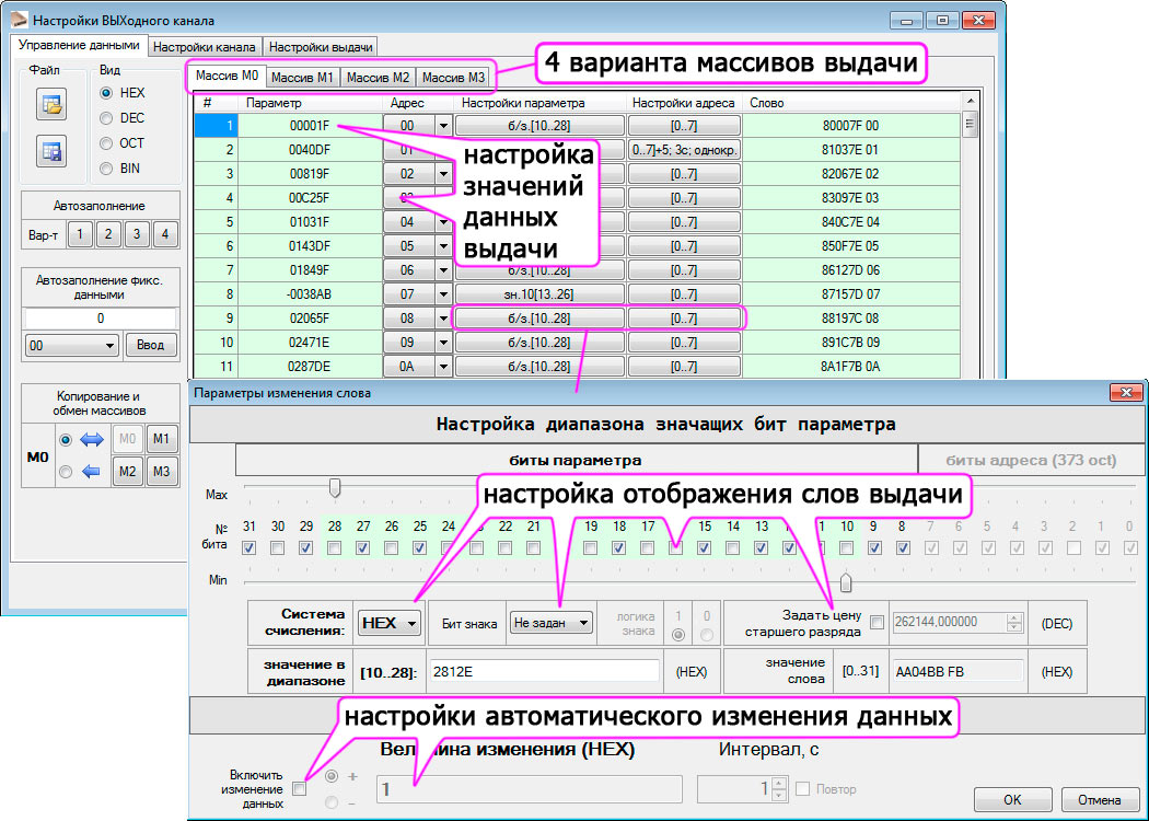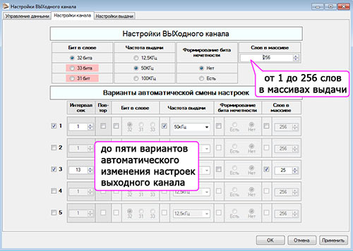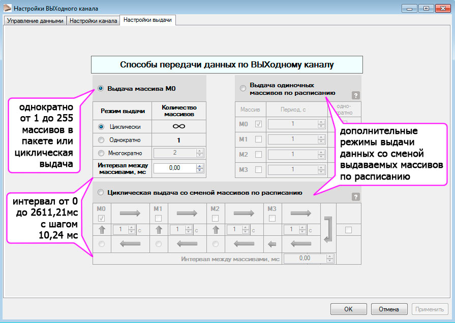 Программные режимы выдачи данных по расписанию